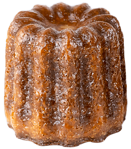 Le canelé est le petit gâteau emblématique de Bordeaux et de son arrière-pays. Il est reconnaissable à sa forme cylindrique, sillonnée (ou canelée) et à sa texture caramélisée… Qui le font ressembler un peu à une toque cuivrée !